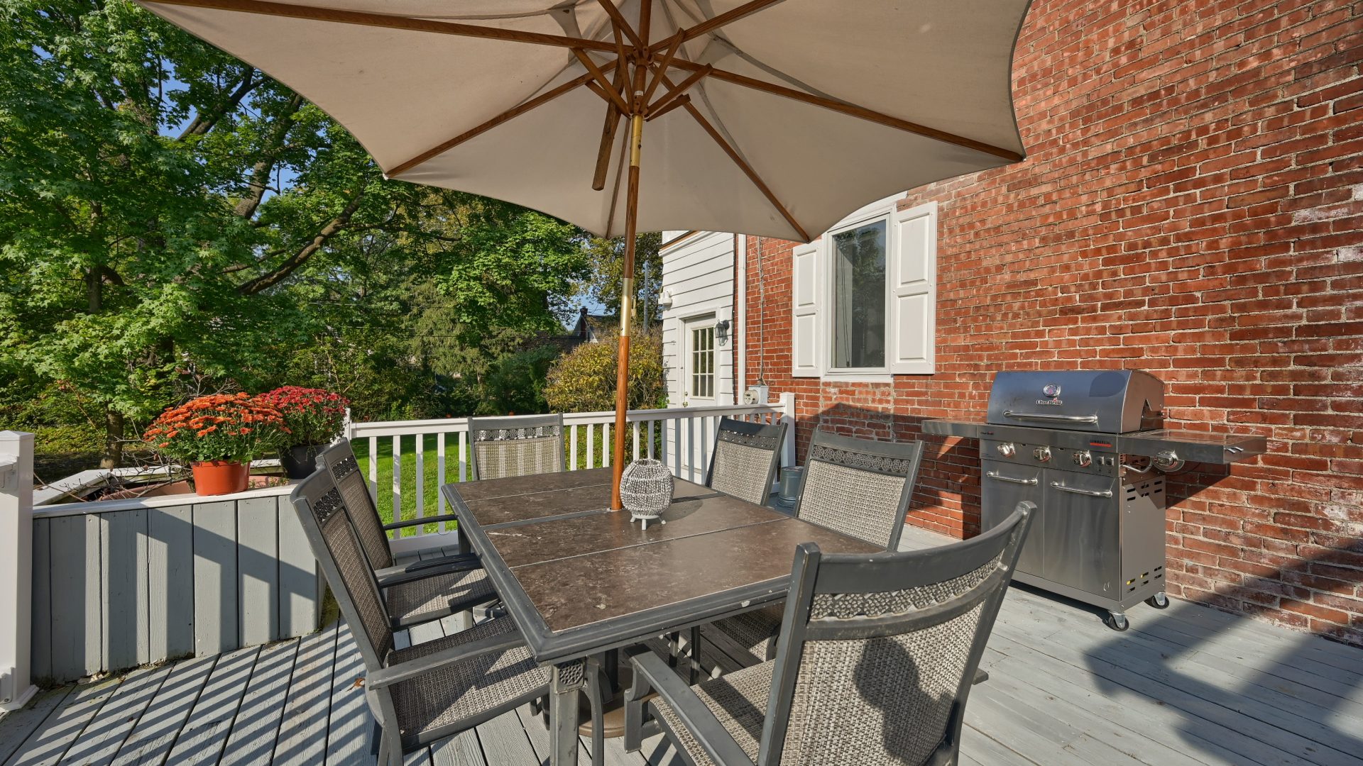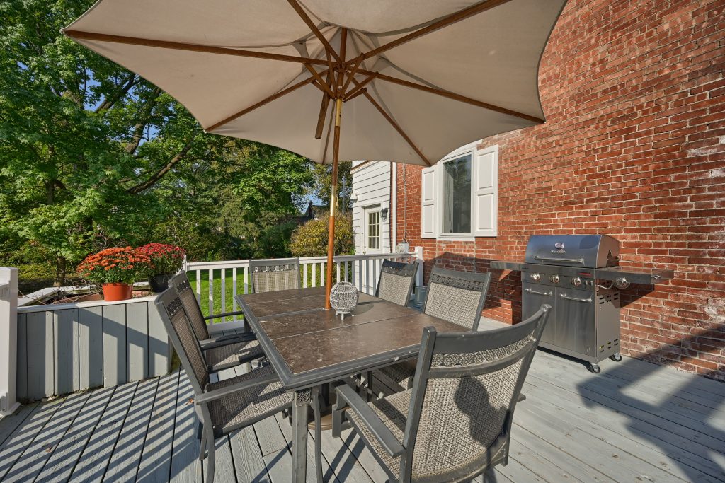 Within the past 20 years, a spacious deck was added and connected with the wrap around porch. The deck features with stainless steel propane gas grill from grilling your favorite foods. Also on the deck you’ll find tables, chairs, and umbrella for enjoying the outdoors. Finally, turn on the fire pit (propane fueled), grab a beverage, and enjoy the evening under the stars.
