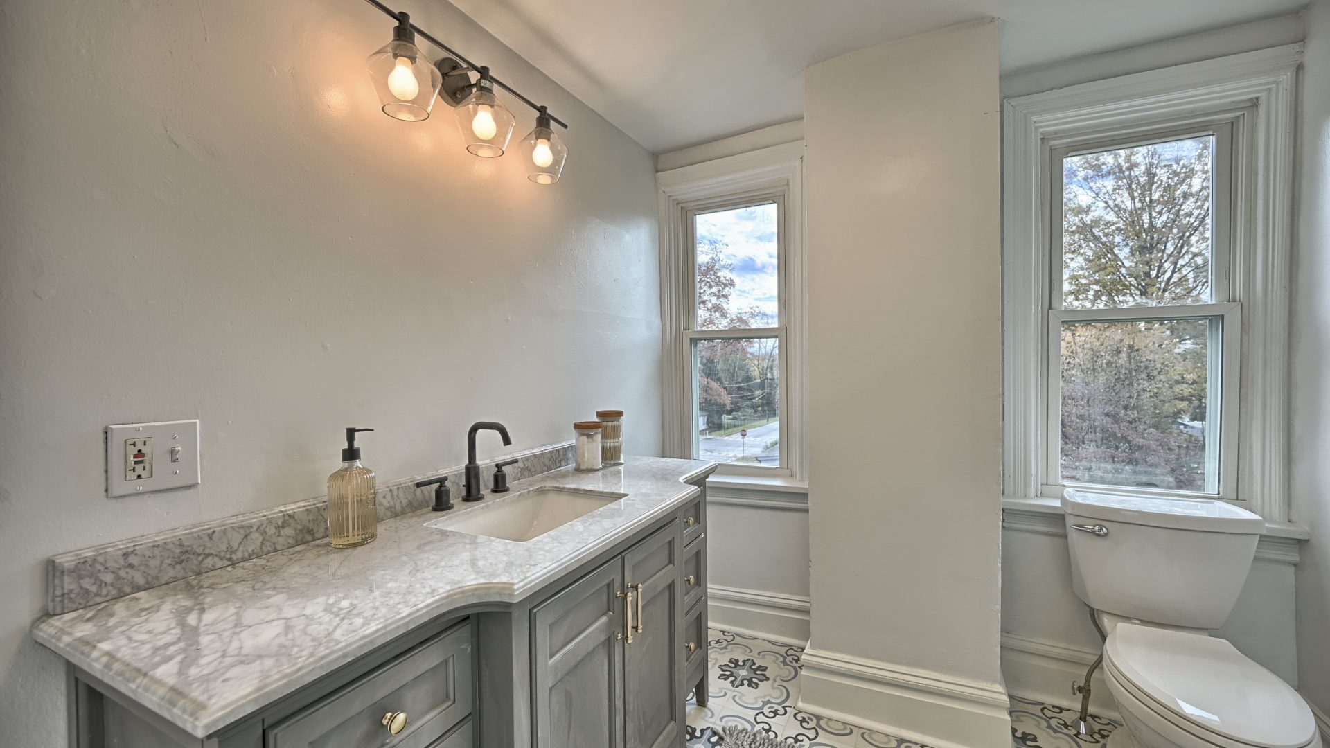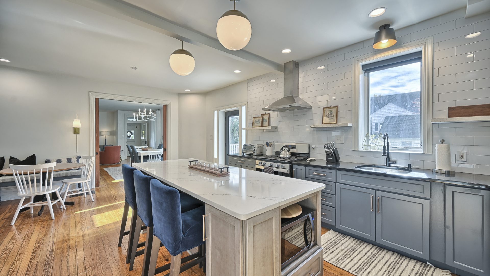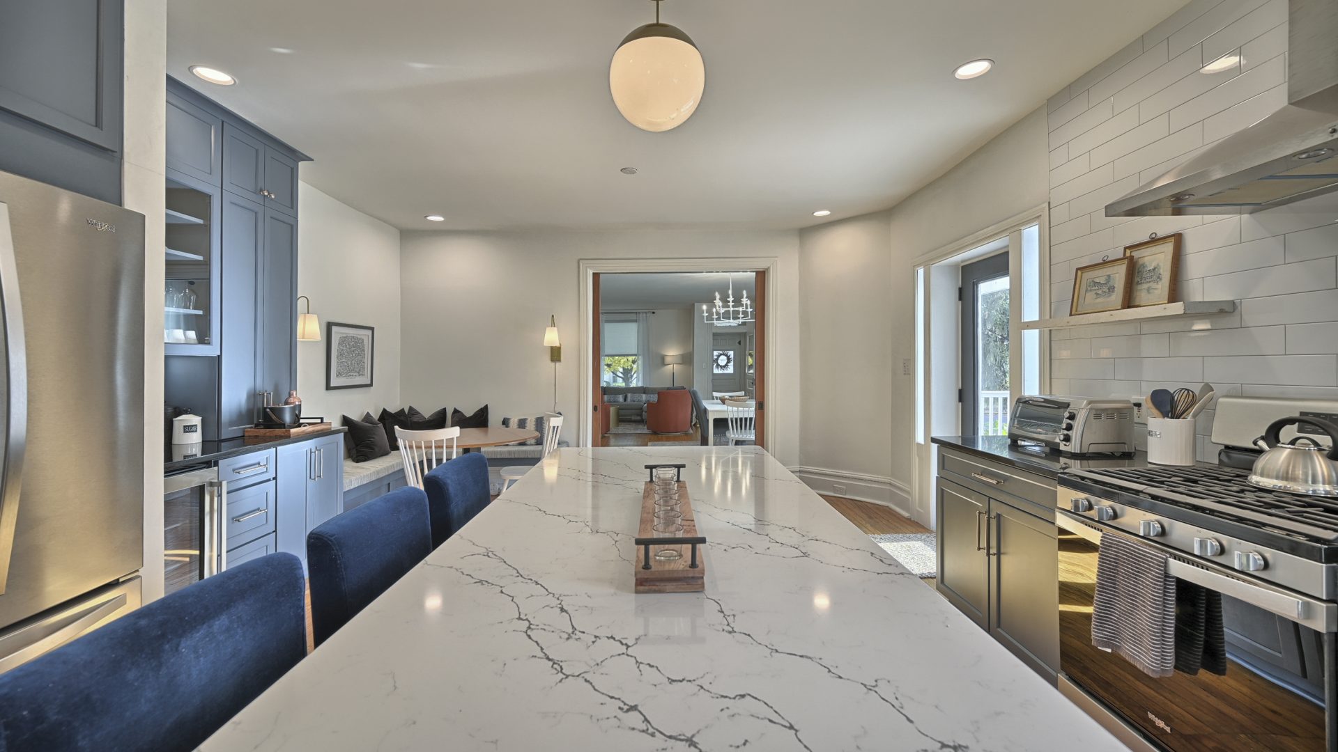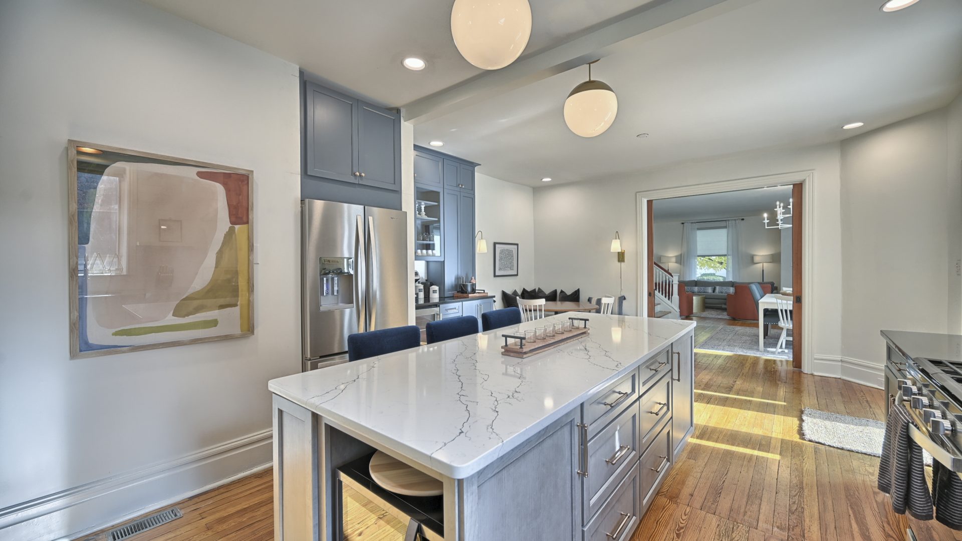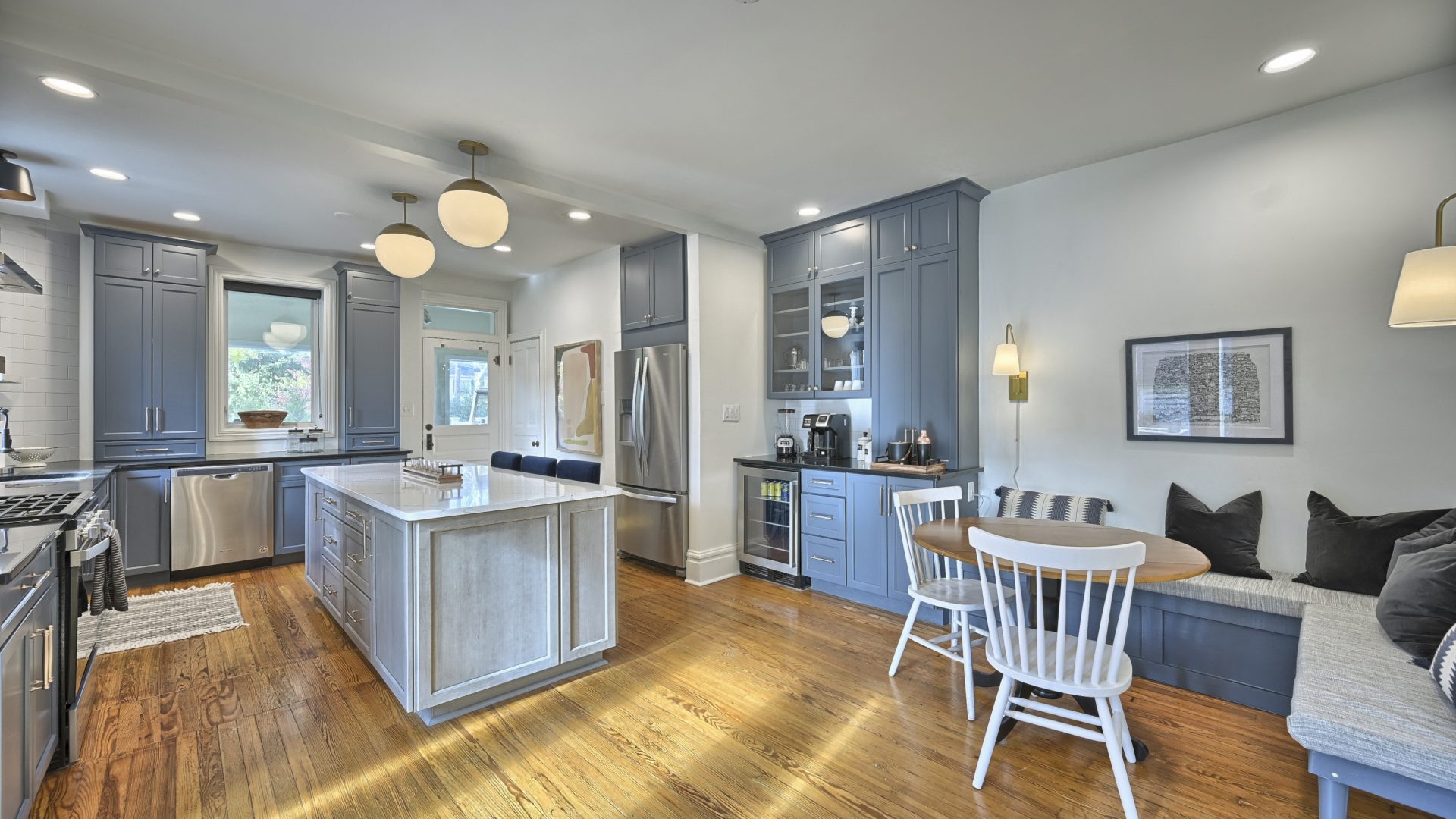 Enter through the front door of this nearly 100-year home and be presented with a beautiful open, living room, dining room, and kitchen.